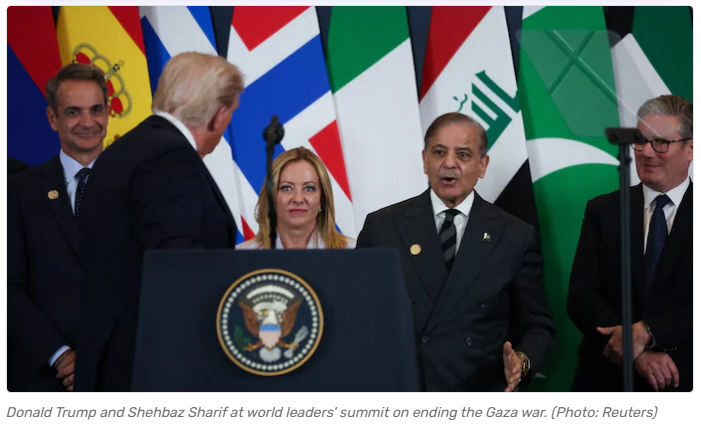 At the Gaza peace summit held in Sharm el-Sheikh, Egypt, US President Donald Trump took a moment during his address to praise India and Prime Minister Narendra Modi while gesturing toward Pakistan’s Prime Minister Shehbaz Sharif, who was standing behind him.